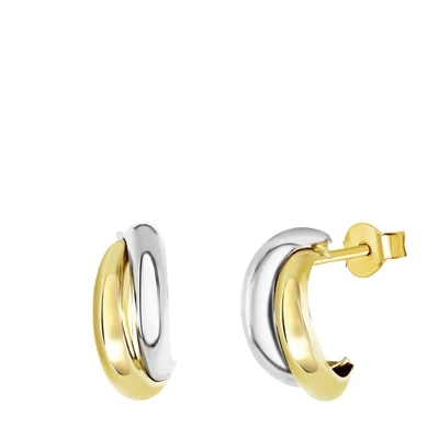 Deze bicolor dames oorbellen zijn gemaakt van 14 karaat goud. De witgouden kant is vervlochten met de geelgouden kant.