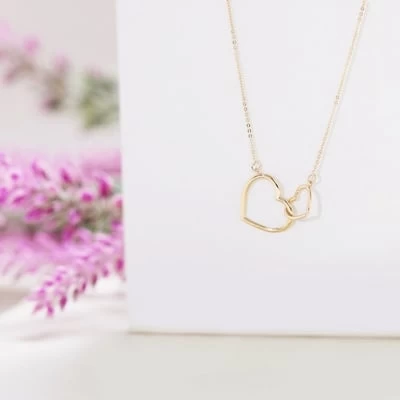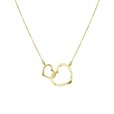 Deze 14 karaat geelgouden hanger heeft een hanger in de vorm van een kleine en grote hart. De ketting heeft een lengte van 45 cm en is voorzien van een tussenoog zodat deze ook op 42 cm te dragen is.