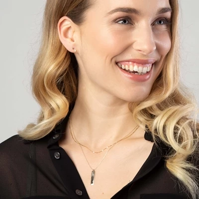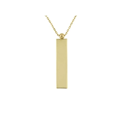 Deze 14 karaat geelgouden ketting heeft verticale bar hanger. De ketting heeft een lengte van 45 cm en is voorzien van een tussenoog zodat deze ook op 42 cm te dragen is.