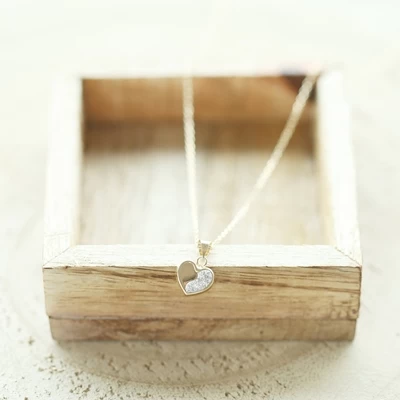 14 Karaat Geelgouden Ketting Hanger Hart Kristal