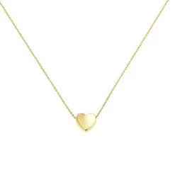 Prachtige 14 karaat geelgouden dames ketting met een hanger in de vorm van een hartje. De ketting is 45 cm lang.