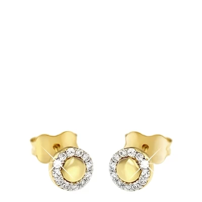 Elegante oorbellen gemaakt van 14 karaat goud. De oorbellen hebben de vorm van een rondje en zijn rondom bezet met schitterende zirkonia steentjes.