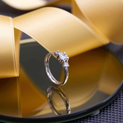 Deze 14 karaat witgouden damesring is gezet met 3 schitterende zirkonia stenen.