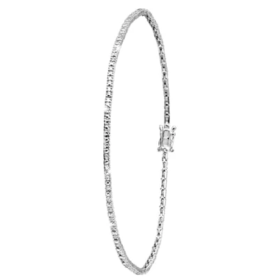 Deze schitterende tennisarmband is gemaakt van 14 karaat witgoud en diamant. De armband is volledig gezet met 56 sprankelende diamanten en deze hebben een totaalgewicht van 0,42 ct. De diamanten zijn single cut geslepen. De armband heeft een lengte van 19 cm.