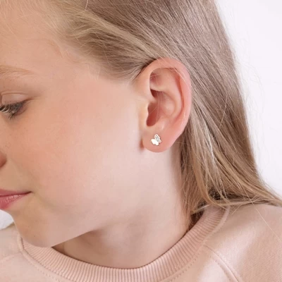 Deze 14 karaat geelgouden oorknoppen in de vorm van een vlinder zijn bezet met schitterende witte kristal stenen.