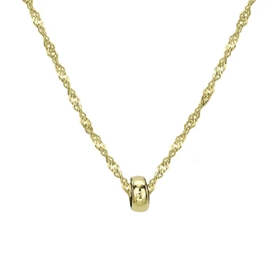 Deze minimalistische ketting is een must-have en mag niet ontbreken in je sieradencollectie! De ketting is erg minimalistisch door de schakels en hanger. De ketting van 9 karaat heeft een Singapore schakel en een lucky ring hanger die een hoogte heeft van 3,5 mm. De lengte van de ketting is 41 cm. Creëer een minimalistische look met de ketting of draag samen met andere kettingen voor een classy look.
