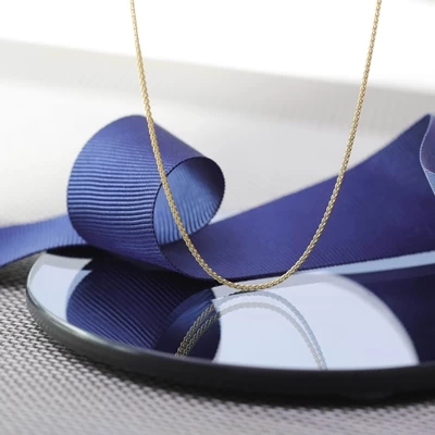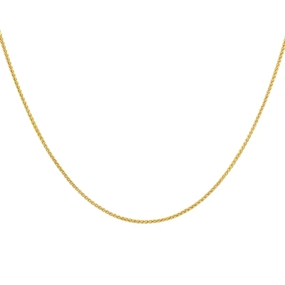 Deze ketting is gemaakt van 9 karaat. Deze verfijnde ketting heeft een spiga schakel.