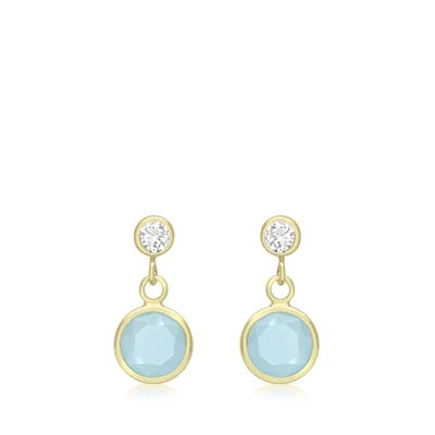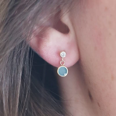 Schattige meisjesoorbellen gemaakt van 9 karaat. De oorbellen zijn bezet met schitterende blauwe en witte zirkonia steentjes.