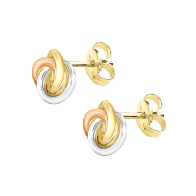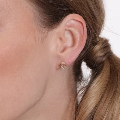 Deze oorknoppen zijn gemaakt van 9 karaat. De tricolor knopjes hebben de vorm van een knoop.