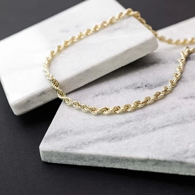 Deze 9 karaat ketting heeft een koordschakel. De schakel heeft een breedte van 4,6mm