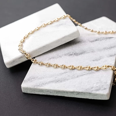 Deze 9 karaat ketting heeft een marine schakel. De schakel heeft een breedte van 6mm