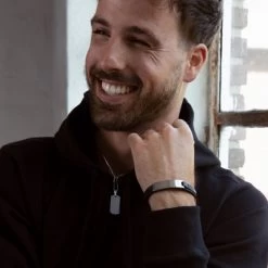 Stalen Armband Met Zwart Leer