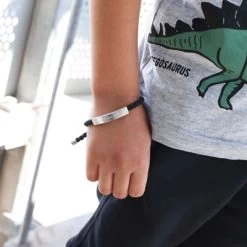 Gerecycled Stalen Jongensplaatarmband Zwart Koord