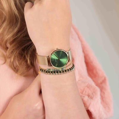 Opzoek naar een uniek horloge? Dit is een prachtige goudkleurig bering horloge. De groene wijzerplaat maakt het horloge uniek.