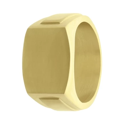 Gerecycled staal – Deze heren zegelring is gemaakt van het materiaal staal en heeft een 14 karaat goud laagje. De zegel is rechthoekig.