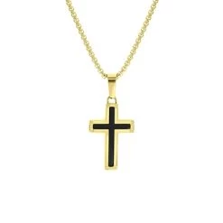 Gerecycled staal – Deze mooie goldplated ketting voor heren is gemaakt van het materiaal staal en heeft een hanger in de vorm van een kruisje. De ketting is te verkrijgen in 2 lengtes: 50+5 cm en 70+5cm.
