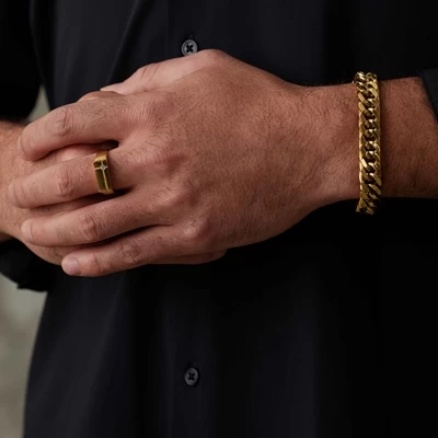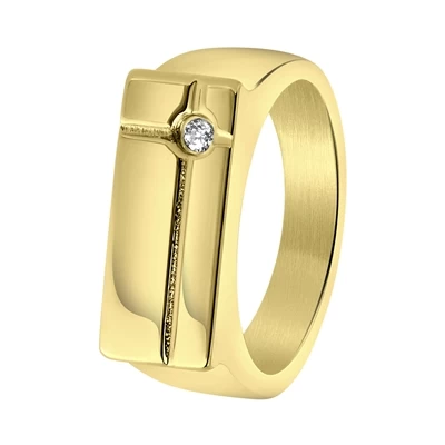Gerecycled staal – Deze stalen goldplated zegelring heeft een zirkoniasteen.