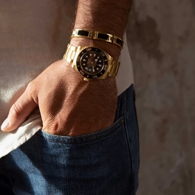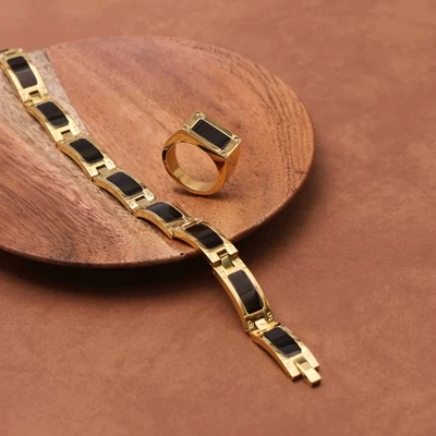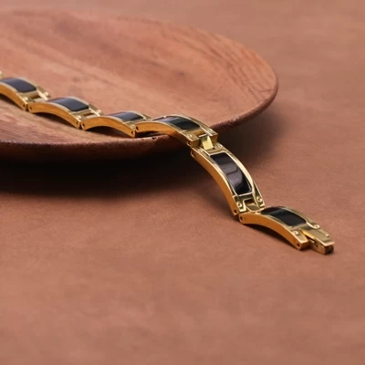 Gerecycled Stalen Gouden Herenarmband Schakel Zwarte Details