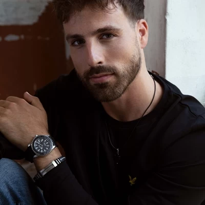Gerecycled staal – Deze siliconen herenketting heeft een zwarte stalen hanger in de vorm van een kruis deze zijn glanzend afgewerkt.