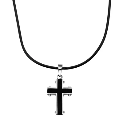 Gerecycled Stalen Herenketting Silliconen Met Hanger Kruis