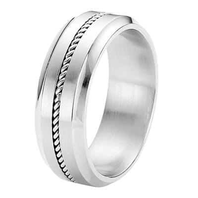 Gerecycled staal – Deze stalen herenring heeft een kabel en is mat/glanzend afgewerkt.