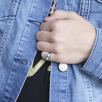 Gerecycled staal – Little Miss Fabulous – Deze mooie 2in1 ring is gemaakt van het materiaal staal. Aan beide ringen zit een hart die bezet is met schitterende kristal stenen. Verkrijgbaar in veschillende kleuren!