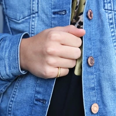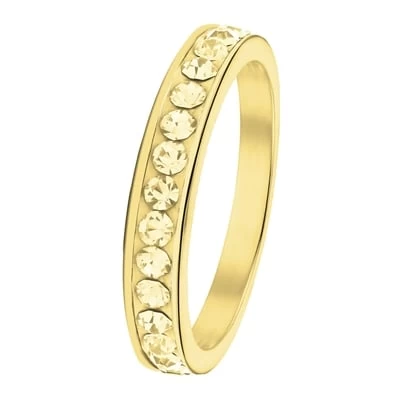 Gerecycled staal – Deze mooie goldplated kinderring is rondom bezet met schitterende kristalsteentjes in de kleur light colorodo.