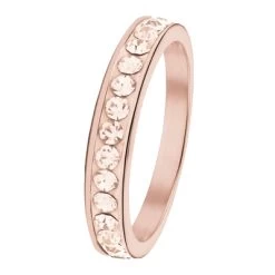Gerecycled staal – Deze mooie roseplated kinderring is rondom bezet met schitterende kristalsteentjes in de kleur light peach.