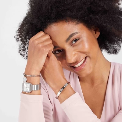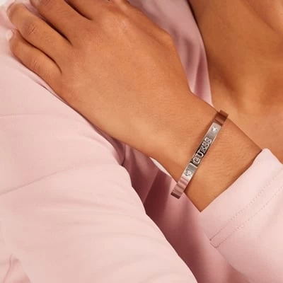 GUESS – Deze mooie Guess bangle is gemaakt van het materiaal staal. De bangle is aan de bovenkant voorzien van een hartjesmotief en aan de onderkant voorzien van de tekst ‘GUESS’ met 2 schitterende kristalstenen.