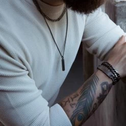 Stalen Herenketting Dubbel Hanger Antique Finish