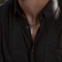 Gerecycled Stalen Herenketting Met Smalle Hanger Plaat