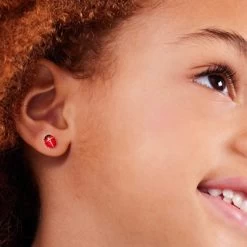 14K Gouden Kind Oorbellen Lieveheersbeestje 12mm