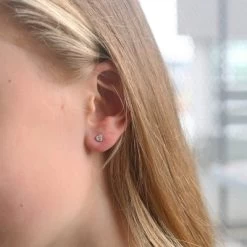 14K Geelgouden Oorbellen Bloem Met Zirkonia 5mm