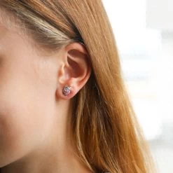 Zilveren Oorringen Vlinder Zirkonia Roze