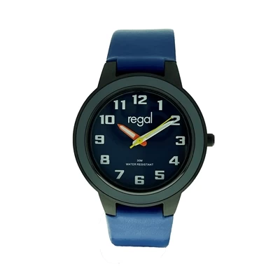 Regal jongens horloge met PU leren band in een blauwe kleur. Het horloge heeft een waterdichtheid van 3 ATM.