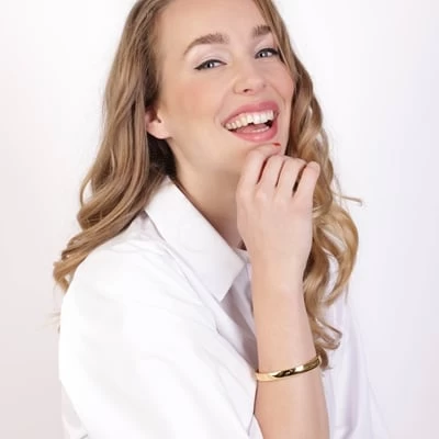 Deze goldplated stalen bangle heeft een breedte van 8 mm. De bangle is verkrijgbaar in twee maten, één met een diameter van 58 mm en de ander met een diameter van 62 mm.