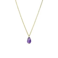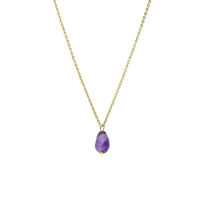 Deze ketting is gemaakt van staal en is afgewerkt met een goudlaagje. De ketting heeft in het midden een hanger die is gemaakt van amethyst.