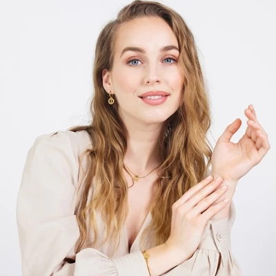 Deze mooie ketting met letter is gemaakt van het materiaal staal en heeft een 18 karaat goud laagje. De ketting is 42 centimeter lang en heeft nog een verlengstukje van 5 centimeter.Leuk om te combineren met de bijpassende armband en oorbellen.