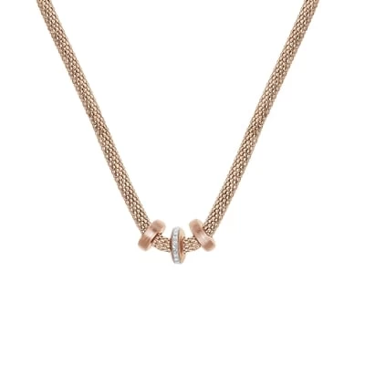 Stalen Ketting Mesh Roseplated Met Kristal