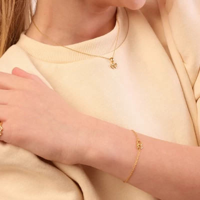 Deze mooie goldplated kinderketting is gemaakt van het materiaal zilver en heeft een hanger in de vorm van twee hartjes. De ketting heeft een lengte van 38 cm. Combineer deze ketting met de bijpassende armband, oorbellen en ring.