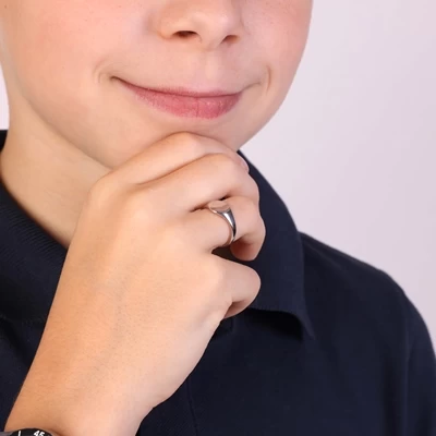 Zilveren zegelring voor jongens. Deze jongensring heeft een ronde vorm met een diameter van 8mm. Maak je stoere outfit helemaal af met deze ring.