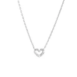 Zilveren kinderketting met een hanger hart bezet met zirkonia.