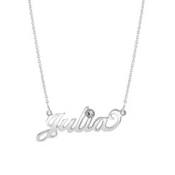 Deze mooie naamketting Carrie style is gemaakt van het materiaal zilver en is voorzien van een laagje rhodium. De ketting heeft een kabelschakel en heeft een kristallen geboortesteen. De ketting heeft een lengte van 45cm. LET OP: Dit artikel wordt speciaal gemaakt op bestelling.