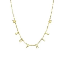 Deze mooie naamketting met sterren is gemaakt in het materiaal zilver en heeft een laagje 18k goldplating. De ketting heeft een anker schakel en is verkrijgbaar in 3 lengtes. LET OP: Dit artikel wordt speciaal gemaakt op bestelling.
