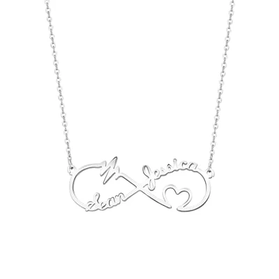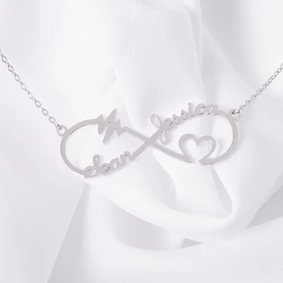 Deze mooie naamketting infinity heeft een open hart en een heartbeat. De ketting is gemaakt van het materiaal zilver. LET OP: Dit artikel wordt speciaal gemaakt op bestelling.