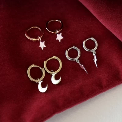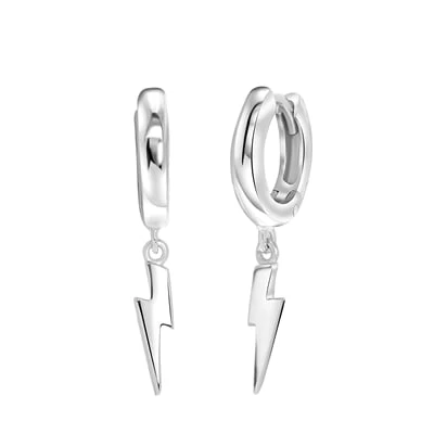 Deze zilveren oorringen hebben een hangertje in de vorm van een bliksemschicht.