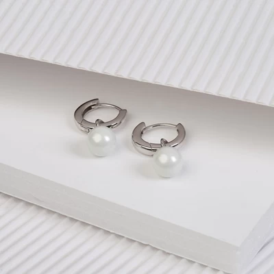 Deze zilveren damesoorbellen hebben een hanger met een imitatieparel.