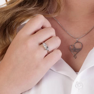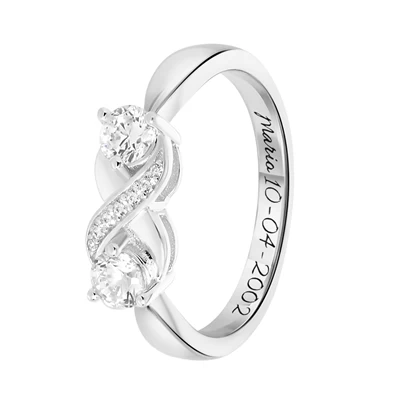 Deze mooie ring is gemaakt van het materiaal zilver en heeft schitterende zirkonia stenen. De gravure wordt zwart afgewerkt. Let op: Dit artikel wordt speciaal gemaakt op bestelling.