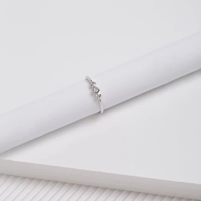 De leuke zilveren ring is versierd met drie kleine zirkonia steentjes.